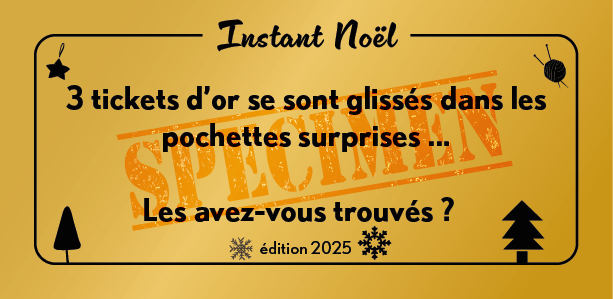 3 tickets d’or se sont glissés dans certaines pochettes. Si vous trouvez un ticket d’or dans votre pochette, rapportez-le à l’accueil pour découvrir votre surprise !